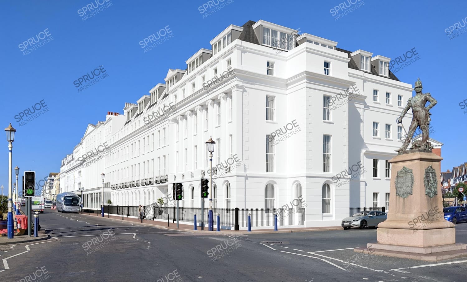 The Grand Parade terrace originally comprised 19 houses when it was built in the 1850s, according to Historic England, and was a Grade II-listed building. The neighbouring Burlington Hotel spans 13 of the houses.