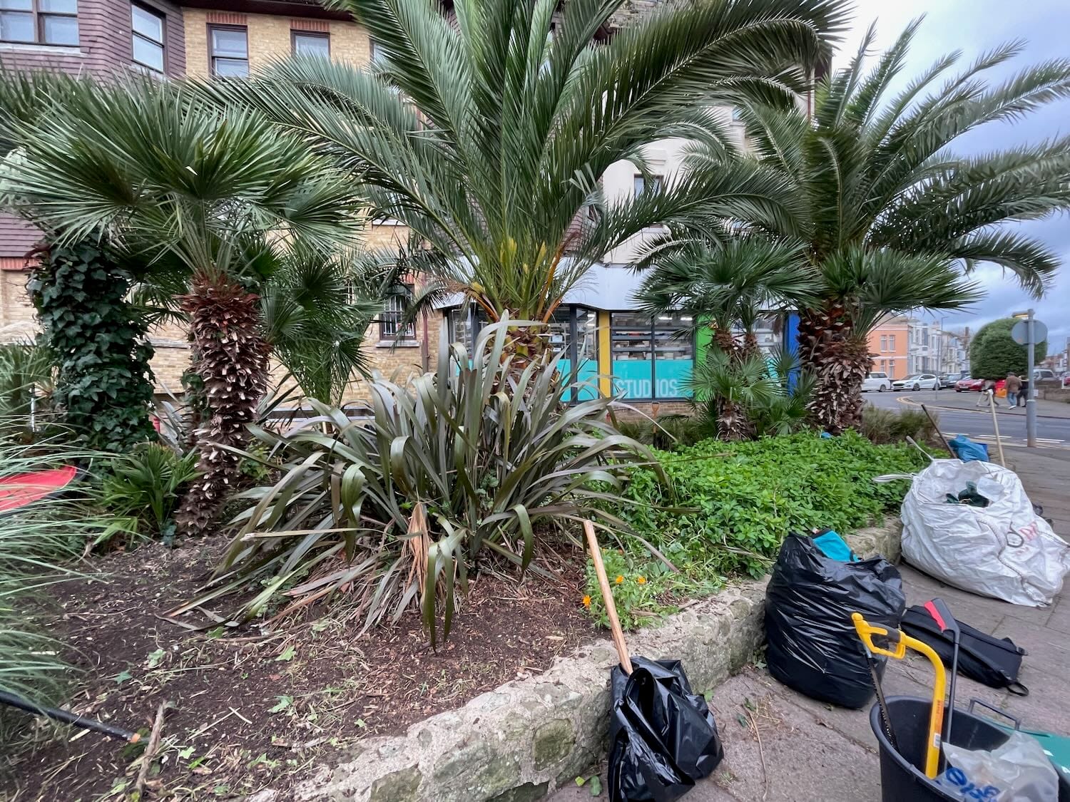 Two dozen volunteers gave up their afternoon to focus on clearing one large flowerbed next to the Eastbourne Pottery Studio. Sack upon sack of litter and weeds mounted up.