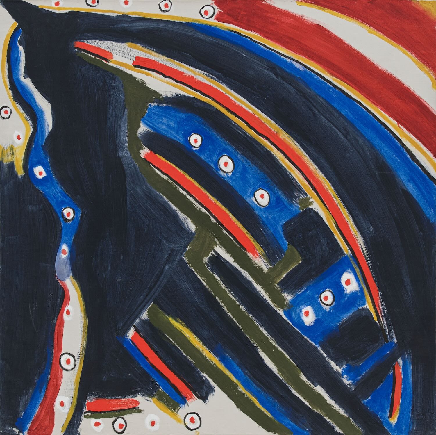 In the main section of works from the 1960s, ‘Nova Scotia’ is restful, deep blue with little life rafts of colour. Next to it is ‘Moonshot’, by contrast an intense sweep of upward motion, capturing the excitement of the space race.