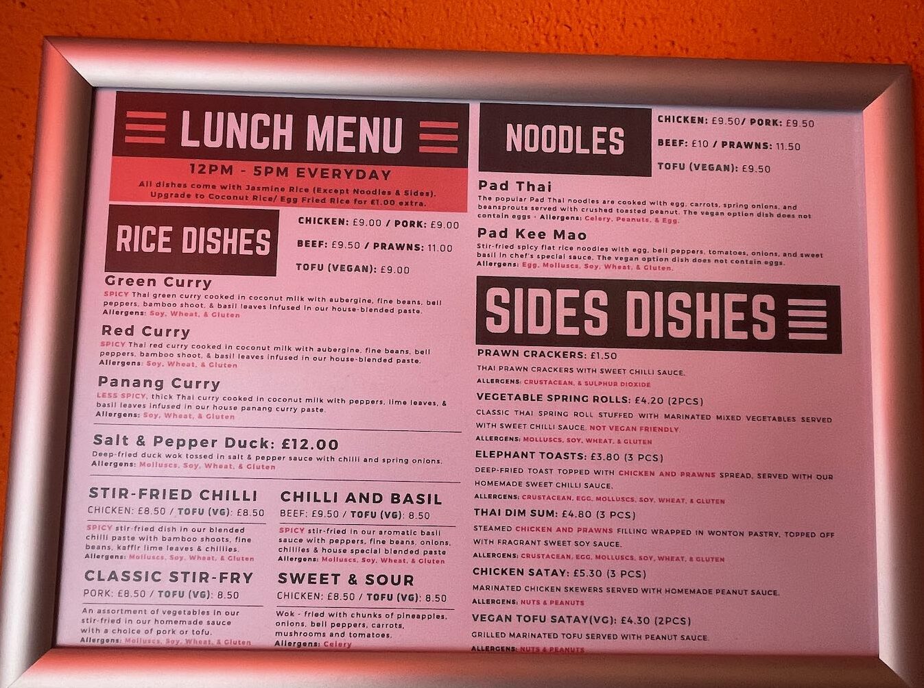 It was from the lunch menu, which offers the various versions of Pad Thai in smaller portions than the main menu for around the £10 mark.