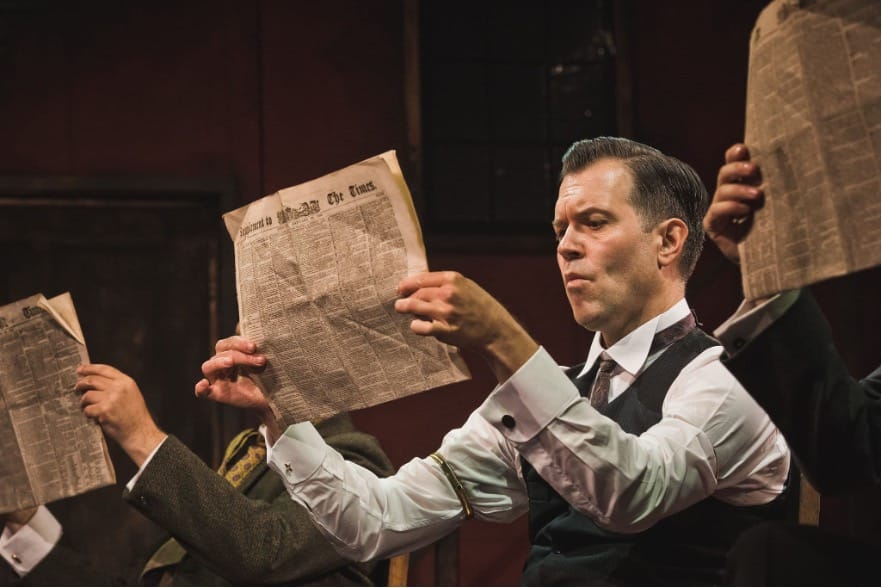 The other scene which made me laugh was set in the gentleman’s club, The Diogenes Club, as Sherlock’s brother Mycroft (Eliot Giuralarocca) and others try to read their papers in silence while the storyline is explained to the audience.