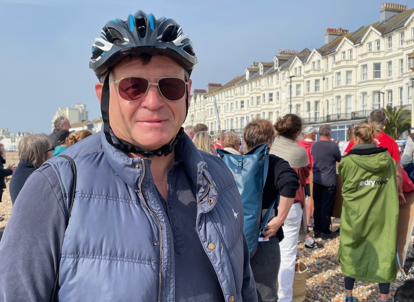 Retired firefighter Neil Sinclair (above) cycled from his home in Pevensey Bay to take part in the protest. He enjoys canoeing and paddle boarding in the bay.