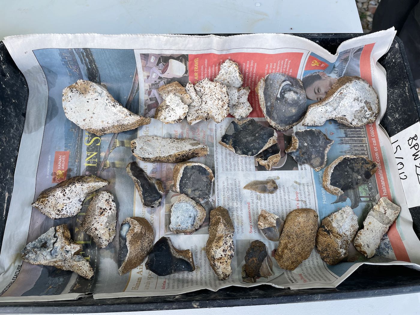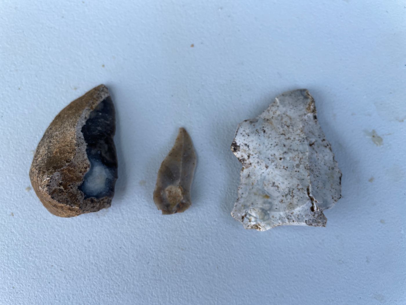 In the current dig, a lot of flint flakes have been found, perhaps left behind by groups of people sitting high on the Downs making tools.
