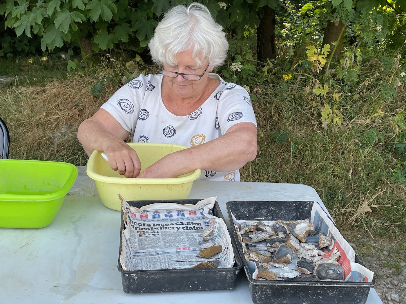 She has recently been involved with excavating a 19th century corn mill which is “all mud and metal” so is relieved to be working in the dry among the flints at Butts Brow.