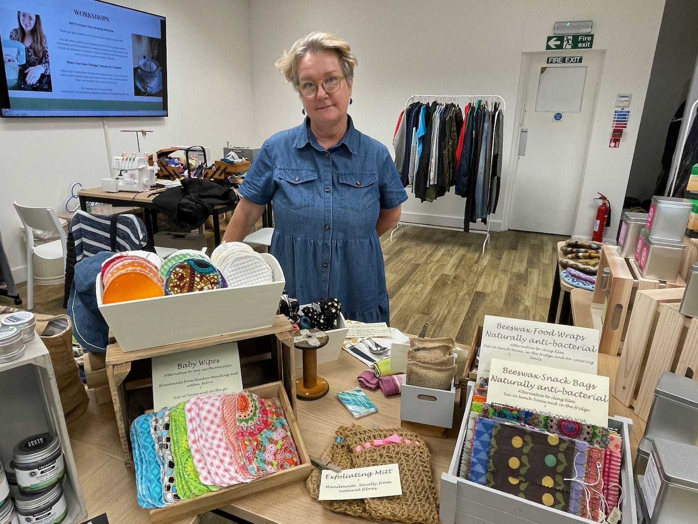 Ruth, below, produces a range of distinctive products including bags made from hessian coffee bean sacks, washable face cleansing cloths and reusable food pouches, which she creates by coating fabric in beeswax.