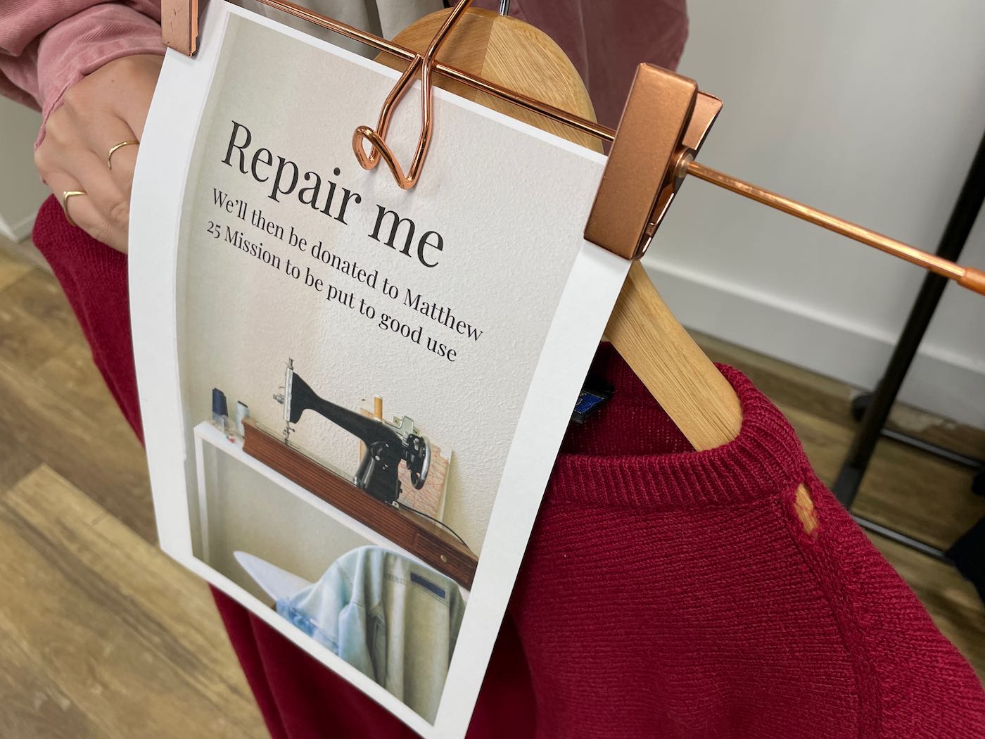 It is shocking to realise that good clothes, which may only have a small hole or need a minor repair, are rejected as ‘rags’ by charity shops because they cannot sell them. Naida points to a good quality red jumper (below), which has a small hole near the neckline.