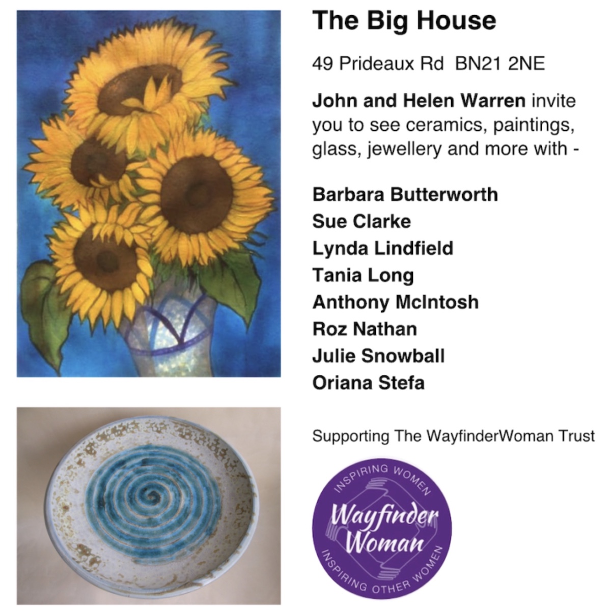 Many of the venues feature work by several artists under one roof. One of these is The Big House in Prideaux Road (above) where there will be ceramics, paintings, glass and jewellery hosted by John and Helen Warren.