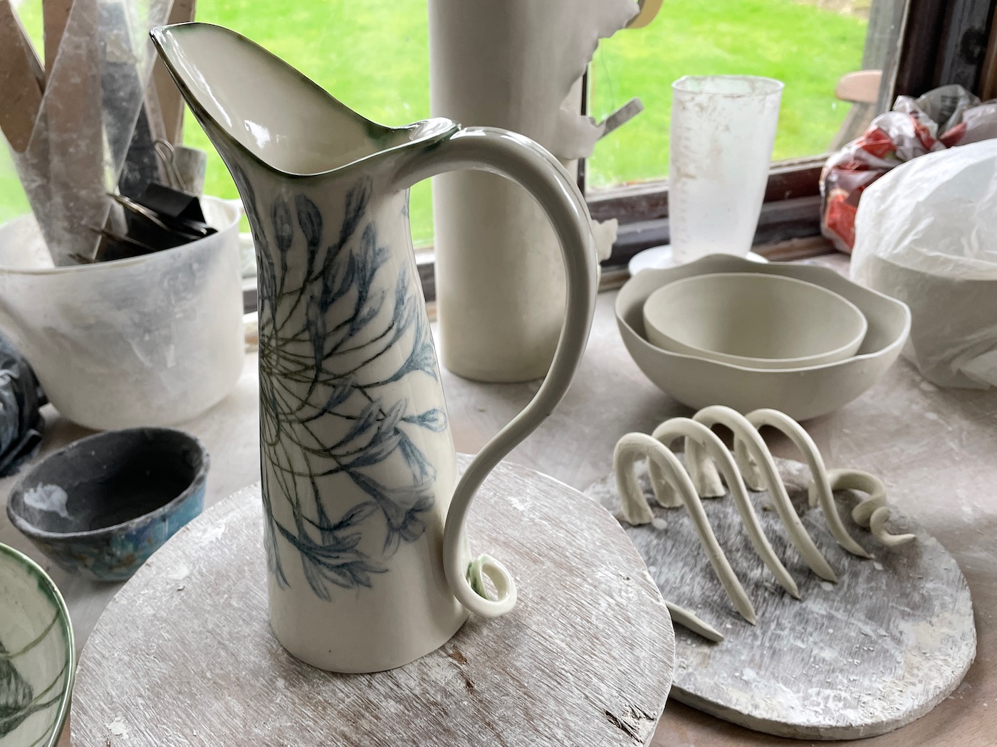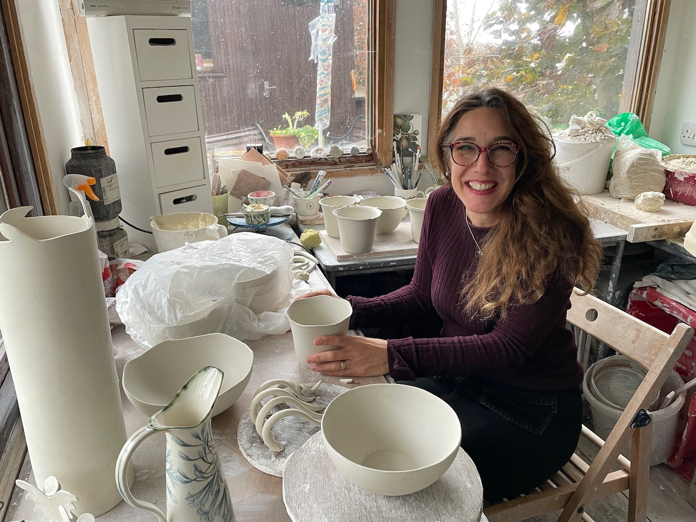 “I was very drawn to ceramics from a young age because I knew an Austrian potter who was a contemporary of Lucy Rie,” said Justine, above in her garden studio.