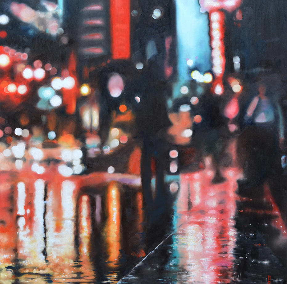 His portfolio features city street scenes with light reflecting on rain-soaked pavements and through raindrops on windows. There are also seascapes and downland landscapes.