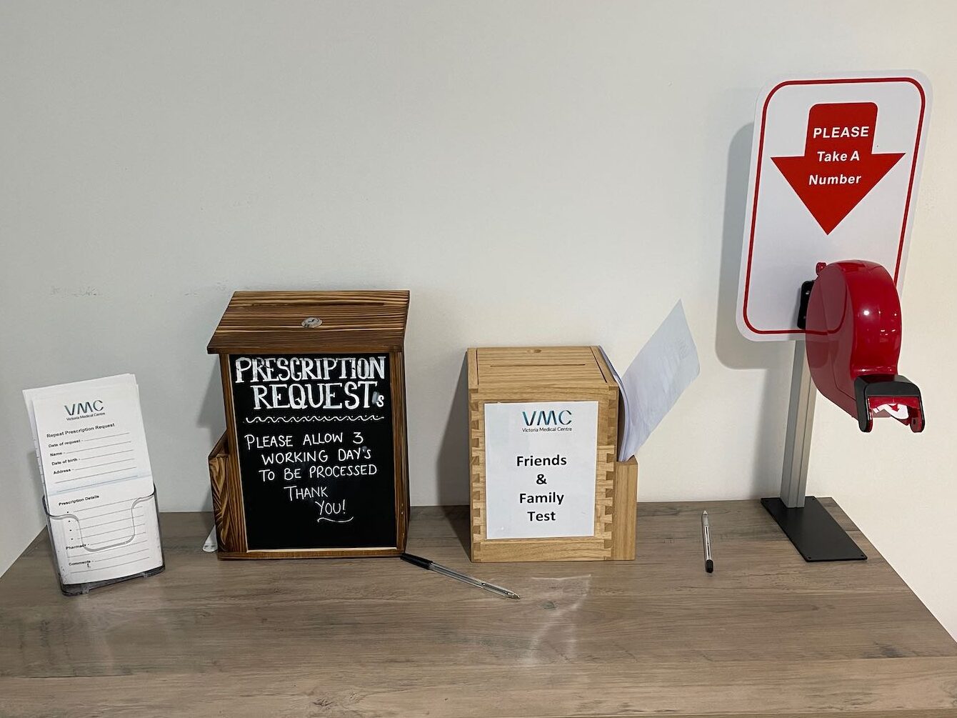 :: We know some patients prefer to arrange appointments in-person at our reception desk. To make this a smoother process, we have introduced a ticket system which enables patients to sit in the waiting room, rather than wait outside, or queue at the desk.